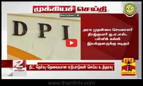 வரும் 13 ஆம் தேதி நடக்கவுள்ள நீட் தேர்வுக்குத் தேவையான ஏற்பாடுகளைச் செய்யுமாறு, அரசு முதன்மை செயலாளர் தீரஜ்குமார் ஐ.ஏ.எஸ். பள்ளிக் கல்வி இயக்குனருக்கு கடிதம் எழுதியுள்ளார்.