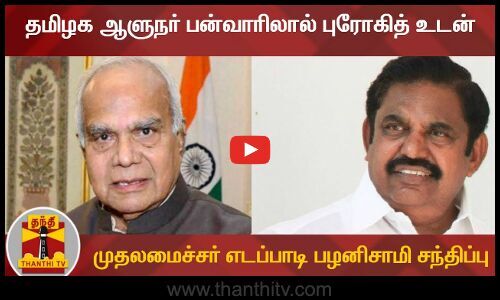 தமிழக ஆளுநர் பன்வாரிலால் புரோகித்தை முதலமைச்சர் எடப்பாடி பழனிசாமி சந்தித்துப் பேசினார். இந்த சந்திப்பின்போது, கொரோனா தடுப்பு நடவடிக்கைகள் குறித்து ஆளுநரிடம் முதலமைச்சர் விளக்கமளித்தார். மேலும், அரசுப்பள்ளி மாணவர்களுக்கு மருத்துவப் படிப்பில் 7.5 சதவீத
