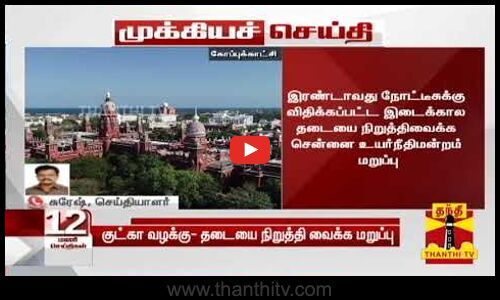 சட்டப்பேரவைக்குள் குட்கா எடுத்து சென்ற விவகாரத்தில் இரண்டாவது நோட்டீசுக்கு விதிக்கப்பட்ட இடைக்காலத் தடையை நிறுத்திவைக்க சென்னை உயர் நீதிமன்றம் மறுத்துவிட்டது.