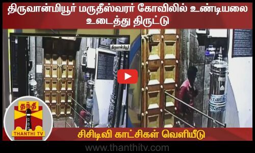 சென்னை திருவான்மியூரில் உள்ள மருந்தீஸ்வரர் கோயிலை நிர்வாகிகள் காலை திறக்க சென்ற போது கோயிலின் 2 உண்டியல்கள் உடைக்கப்பட்டிருந்தது தெரியவந்தது. உடனே போலீசாருக்கு தகவல் தெரிவிக்கப்பட்டதை தொடர்ந்து அங்கிருந்த சிசிடிவி காட்சிகளை அவர்கள் சோதனையிட்டனர். அப்போது கோயிலுக்குள் பயபக்தியோடு வந்த இளைஞர் ஒருவர், சாமியை கும்பிட்டு விட்டு பின் ஒரு ரூபாய் காசை உண்டியலில் போடுவதும். பின் அதே உண்டியலை அவர் உடைத்துச் செல்வதும் சிசிடிவியில் வெட்டவெளிச்சமாக தெரிந்தது.
