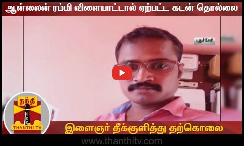 புதுச்சேரியில் ஆன்லைன் ரம்மி விளையாட்டிற்காக வாங்கிய கடனை திருப்பி செலுத்த முடியாததால், இளைஞர் ஒருவர் தீ குளித்து தற்கொலை செய்துக்கொண்டார்.