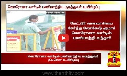 சென்னை ராஜீவ் காந்தி மருத்துவமனை கொரோனா வார்டில் பணியாற்றிய மருந்துவர் லோகேஷ் குமார் திடீரென உயிரிழந்தார்.