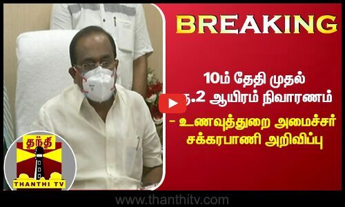 தமிழகம் முழுவதும் கொரோனா கால நிவாரணம் வழங்கும் பணி திங்கள் கிழமை தொடங்கும் என தமிழக உணவுத்துறை அமைச்சர் சக்கரபாணி கூறியுள்ளார். தலைமை செயலகத்தில் முதலமைச்சர் ஸ்டாலினுடன் ஆலோசனை மேற்கொண்ட பின்னர் செய்தியாளர்களிடம் பேசிய அவர், ஒவ்வொரு ரேசன் கடைகளிலும் நாளொன்றுக்கு 200 டோக்கன்கள் வழங்கப்பட்டு முதல் தவணை நிவாரண தொகையாக 2 ஆயிரம் ரூபாய் வழங்கப்படும் என்றும் ரேசன் கடைகள் காலை 8 மணி முதல் 12 மணி வரையில் செயல்படும் என்றும் கூறினார்.