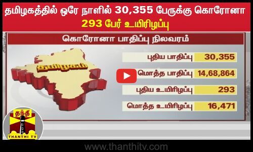 தமிழகத்தில் புதிதாக 30,355 பேருக்கு கொரோனா - ஒரே நாளில் 293 பேர் உயிரிழப்பு