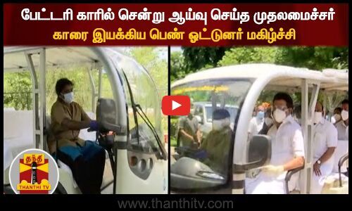 பேட்டரி காரில் சென்று ஆய்வு செய்த முதலமைச்சர் - காரை இயக்கிய பெண் ஓட்டுனர் மகிழ்ச்சி