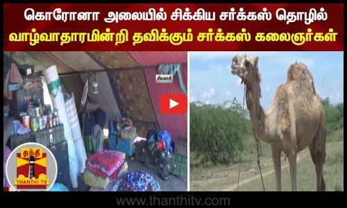 நேபாள நாட்டை பூர்விகமாக கொண்ட சர்க்கஸ் கலைஞர்கள், தமிழ்நாட்டில் கிராமங்கள் தோறும் சென்று சர்க்கஸ் கூடாரங்கள் அமைத்து மக்களை மகிழ்வித்து வந்தனர். கதிரேசன் என்பவர் தலைமையில் 20 பேர் கொண்ட குழுவினர், சிவகாசி அருகே நாராயணபுரம் கிராமத்திற்கு வந்தனர். ஆனால், கொரோனா அலையில் சிக்கி, சர்க்கஸ் கூடாரம் அமைத்து தொழில் நடத்த முடியாமல், வருமானமின்றி தவித்து வருகின்றனர். இவர்களுக்கு நாராயணபுரம் கிராம மக்கள், தங்களால் முடிந்த உதவிகளை செய்து வருகின்றனர். ஒட்டகம், குதிரை, நாய், குரங்கு உள்ளிட்ட விலங்குகளுக்கு கூட உணவு வழங்க முடியாமல் கஷ்டப்பட்டு வருகின்றனர். சர்க்கஸ் கூடாரங்கள் அமைக்க தேவையான உபகரணங்கள், இருக்கைகள் அனைத்தும் வெயில், மழையில் வீணாகி வருகின்றன. உடலை வில்லாக வளைத்தும் வனவிலங்குகள் மூலமாகவும் சர்க்கஸ் சாகச வித்தைகள் செய்து காட்டி அனைவரையும் சந்தோசப்படுத்தும் சர்க்கஸ் கலைஞர்களின் சோகத்தை தீர்க்க, தமிழக அரசு நடவடிக்கை எடுக்குமா என்று ஏக்கத்துடன் காத்திருக்கின்றனர்.