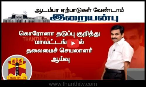 மாவட்டங்களுக்கு ஆய்வு பணிக்காக வரும் போது ஆடம்பர ஏற்பாடுகள் வேண்டாம் என தலைமைசெயலாளர் இறையன்பு வேண்டுகோள் விடுத்துள்ளார்.