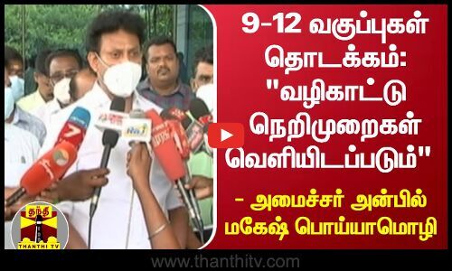 செப்டம்பர் 1 முதல் பள்ளிகள் திறப்பது குறித்த வழிகாட்டு நெறிமுறைகள் ஒரு சில தினங்களில் வெளியிடப்படும் என, அமைச்சர் அன்பில் மகேஷ் பொய்யாமொழி தெரிவித்தார். சென்னை கோட்டூர்புரத்தில் உள்ள அண்ணா நூற்றாண்டு நூலகத்தில், உயர் அதிகாரிகளுடன் அமைச்சர் அன்பில் மகேஷ் பொய்யாமொழி ஆலோசனை நடத்தினார். பின்னர் செய்தியாளர்களைச் சந்தித்த அவர், செப்டம்பர் ஒன்றாம் தேதியில் இருந்து ஒன்பது முதல் பன்னிரண்டாம் வகுப்பு வரை 50 விழுக்காடு மாணவர்களுக்கு வகுப்புகள் தொடங்க தயாராகி வருவதாக தெரிவித்தார். இதற்காக, ஏற்கனவே வெளியிடப்பட்ட வழிகாட்டு நெறிமுறைகளில் மாற்றங்கள் செய்து ஒரு சில தினங்களில் வெளியிடப்படும் எனவும், சுழற்சி முறையில் மாணவர்களுக்கு வகுப்புகள் நடத்தப்படும் எனவும் தெரிவித்தார். மேலும், ஆன்லைன் வகுப்புகள் நடைபெறும் என்றும் அமைச்சர் அன்பில் மகேஷ் குறிப்பிட்டார்.