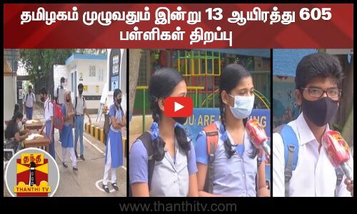 தமிழகம் முழுவதும் இன்று 13 ஆயிரத்து 605 பள்ளிகள் திறப்பு