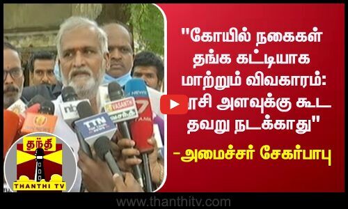 "கோயில் நகைகள் தங்க கட்டியாக மாற்றும் விவகாரம்:தூசி அளவுக்கு கூட தவறு நடக்காது"-அமைச்சர் சேகர்பாபு