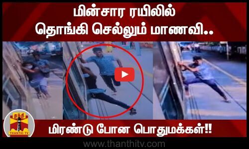 மின்சார ரயிலில் குரங்கு போல தொங்கி செல்லும் மாணவி.. மிரண்டு போன பொதுமக்கள்!!