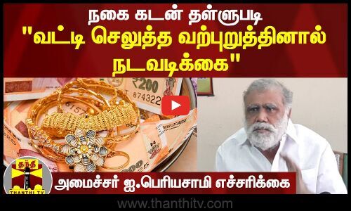 நகை கடன் தள்ளுபடி பெற தகுதியான நபர்களிடமிருந்து வட்டி செலுத்த வற்புறுத்தும் அதிகாரிகளில் மீது நடவடிக்கை எடுக்கப்படும் என அமைச்சர் ஐ.பெரியசாமி எச்சரித்துள்ளார்.