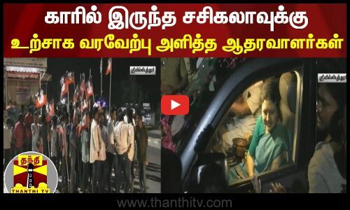 காரில் இருந்த சசிகலாவுக்கு உற்சாக வரவேற்பு அளித்த ஆதரவாளர்கள்