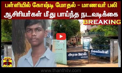 #Breaking || பள்ளியில் கோஷ்டி மோதல் - மாணவர் பலி... ஆசிரியர்கள் மீது பாய்ந்த நடவடிக்கை