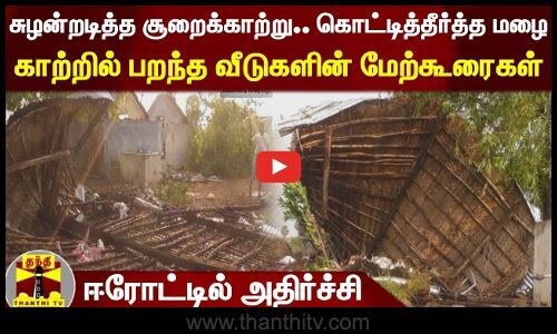 சுழன்றடித்த சூறைக்காற்று.. கொட்டித்தீர்த்த மழை; காற்றில் பறந்த வீடுகளின் மேற்கூரைகள்