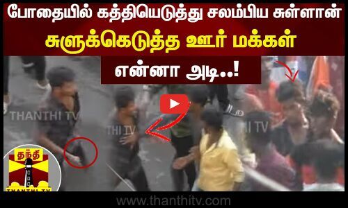 என்னா அடி..! போதையில் கத்தியெடுத்து சலம்பிய சுள்ளான் - சுளுக்கெடுத்த ஊர் மக்கள்