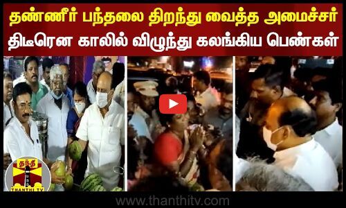 தண்ணீர் பந்தலை திறந்து வைத்த அமைச்சர்... திடீரென காலில் விழுந்து கலங்கிய பெண்கள்