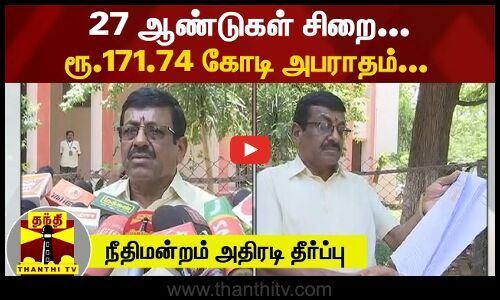 மற்றும் மோகன்ராஜ் மட்டும் ஆஜராகினர். குற்றம்சாட்டப்பட்ட இருவருக்கும் தலா 27 ஆண்டுகள் கடுங்காவல் தண்டனை வழங்கிய நீதிபதி, 171 கோடியே 74 லட்சம் ரூபாய் அபராதம் விதித்து