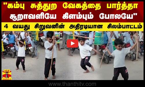 'கம்பு சுத்துற வேகத்தை பார்த்தா சூறாவளியே கிளம்பும் போலயே' - 4 வயது சிறுவனின் அதிரடியான சிலம்பாட்டம்