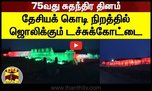 75வது சுதந்திர தினத்தை முன்னிட்டு சதுரங்கப்பட்டினம் டச்சுக் கோட்டை தேசியக் கொடி நிறத்தில் வண்ண விளக்குகளால் அலங்கரிக்கப்பட்டுள்ளது .