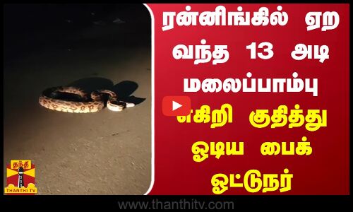 ரன்னிங்கில் ஏற வந்த 13 அடி மலைப்பாம்பு - எகிறி குதித்து ஓடிய பைக் ஓட்டுநர்
