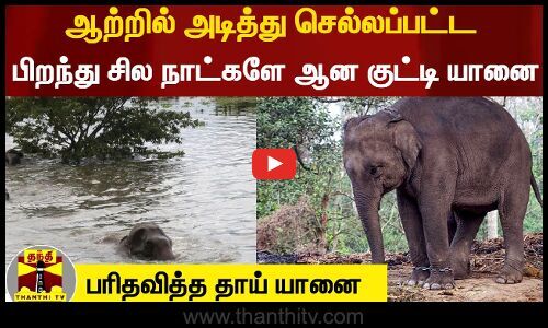 ஆற்றில் அடித்து செல்லப்பட்ட பிறந்து சில நாட்களே ஆன குட்டி யானை - பரிதவித்த தாய் யானை
