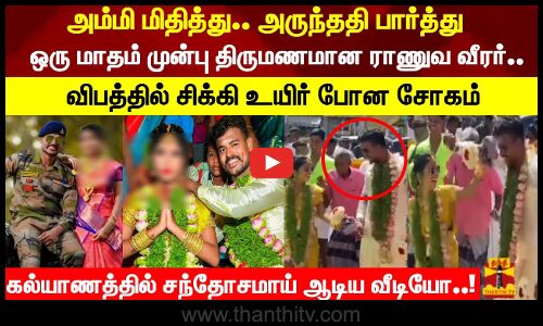அம்மி மிதித்து.. அருந்ததி பார்த்துஒரு மாதம் முன்பு திருமணமான ராணுவ வீரர்.. விபத்தில் சிக்கி உயிர் போன சோகம் கல்யாணத்தில் சந்தோசமாய் ஆடிய வீடியோ..!