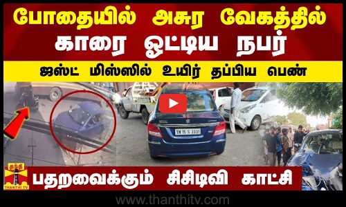 போதையில் அசுர வேகத்தில் காரை ஓட்டிய நபர் ஜஸ்ட் மிஸ்ஸில் உயிர் தப்பிய பெண்
