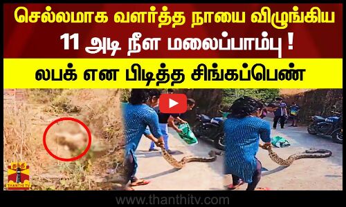 செல்லமாக வளர்த்த நாயை விழுங்கிய 11 அடி நீள மலைப்பாம்பு! லபக் என பிடித்த சிங்கப்பெண்