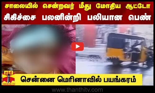 கடந்த 13 ஆம் தேதி இரவு திருவல்லிக்கேணி பாரதி சாலையில் ஆட்டோ ஒன்று பெண் மோதி விபத்து ஏற்படுத்தி நிற்காமல் சென்றுள்ளது. விபத்தில் காயமடைந்த பெண்ணை அக்கம் பக்கத்தினர் மீட்டு ஓமந்தூரார் மருத்துவமனையில் அனுமதித்தனர்.