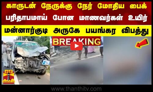 காருடன் நேருக்கு நேர் மோதிய பைக் - பரிதாபமாய் போன மாணவர்கள் உயிர்..மன்னார்குடி அருகே பயங்கர விபத்து