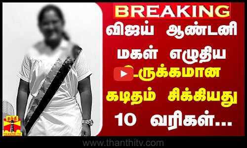 BREAKING || விஜய் ஆண்டனி மகள் எழுதிய உருக்கமான கடிதம் சிக்கியது - உடைந்து போக வைக்கும் வரிகள்...