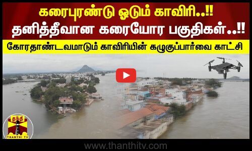 கரைபுரண்டு ஓடும் காவிரி.!தனித்தீவான கரையோர பகுதிகள்.!கோரதாண்டவமாடும் காவிரியின் கழுகுப்பார்வை காட்சி