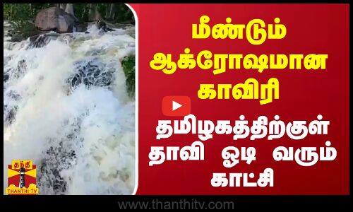 மீண்டும் ஆக்ரோஷமான காவிரி.. தமிழகத்திற்குள் தாவி ஓடி வரும் காட்சி