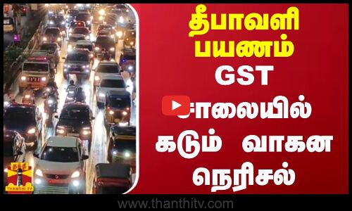 தீபாவளி பண்டிகையை கொண்டாட சென்னையில் இருந்து ஒரே நேரத்தில் சொந்த ஊர்களுக்கு புறப்படும் மக்களால் ஜி.எஸ்.டி. சாலையில் கடும் போக்குவரத்து நெரிசல் ஏற்பட்டுள்ளது.