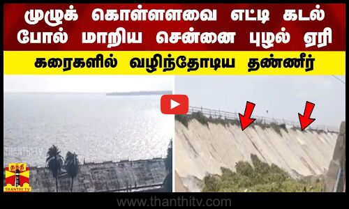 முழுக் கொள்ளளவை எட்டிய சென்னை புழல் ஏரி... கரைகளில் தண்ணீர் வெளியேறியதால் பரபரப்பு