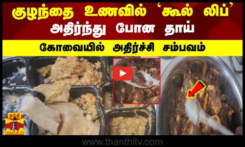 குழந்தைக்காக ஆர்டர் செய்த உணவில் கிடந்த 'கூல் லிப்' - தாய் அதிர்ச்சி. உணவை சாப்பிட்ட குழந்தைக்கு வாந்தி மற்றும் வயிற்றுப்போக்கு ஏற்பட்டதால் பரபரப்பு. கோவை மாவட்டம் கவுண்டம்பாளையம் பகுதியில் நடந்த அதிர்ச்சி சம்பவம். பாதிக்கப்பட்ட குழந்தை கோவை அரசு மருத்துவமனையில் அனுமதி. இணையத்தில் வீடியோவை வெளியிட்ட தாய் - உரிய நடவடிக்கை எடுக்க கோரிக்கை.