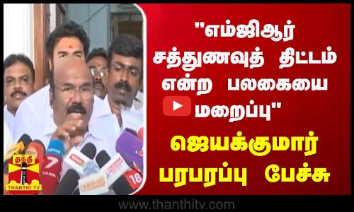 "எம்ஜிஆர் சத்துணவுத் திட்டம் என்ற பலகையை மறைப்பு" - ஜெயக்குமார் பரபரப்பு பேச்சு