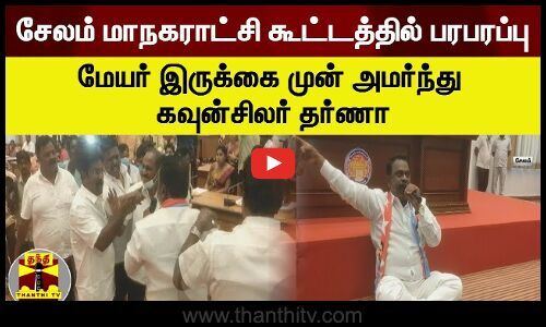 சேலம் மாநகராட்சி கூட்டத்தில் பரபரப்பு - மேயர் இருக்கை முன் அமர்ந்து கவுன்சிலர் தர்ணா