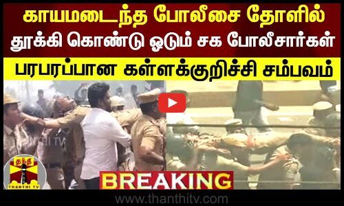 காயமடைந்த போலீசை தோளில் தூக்கி கொண்டு ஓடும் சக போலீசார்கள்