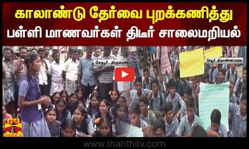 காலாண்டு தேர்வை புறக்கணித்து அரசு பள்ளி மாணவர்கள் திடீர் சாலைமறியல்