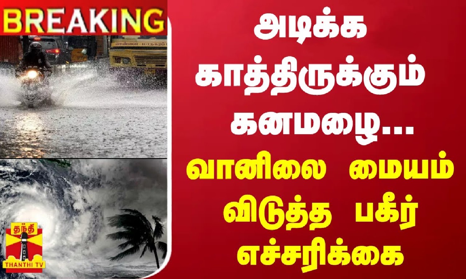 #BREAKING | அடிக்க காத்திருக்கும் கனமழை... வானிலை மையம் விடுத்த பகீர் எச்சரிக்கை