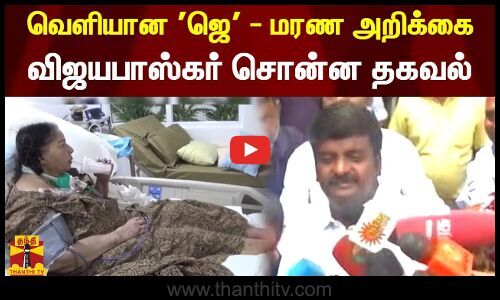 வெளியான ஜெ -மரண அறிக்கை - முன்னாள் அமைச்சர் விஜயபாஸ்கர் சொன்ன தகவல்