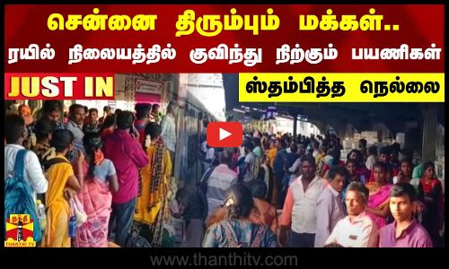 #JUSTIN|| சென்னை திரும்பும் மக்கள்.. ரயில் நிலையத்தில் குவிந்து நிற்கும் பயணிகள்.. ஸ்தம்பித்த நெல்லை