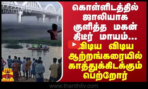 கொள்ளிடத்தில் ஜாலியாக குளித்த மகன் திடீர் மாயம்...விடிய விடிய ஆற்றங்கரையில் காத்துக்கிடக்கும் பெற்றோர்