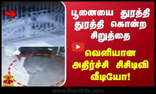 பூனையை துரத்தி துரத்தி கொன்ற சிறுத்தை - வெளியான அதிர்ச்சி சிசிடிவி வீடியோ!
