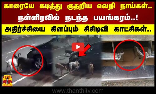 காரையே கடித்து குதறிய வெறி நாய்கள். நள்ளிரவில் நடந்த பயங்கரம்.அதிர்ச்சி கிளப்பும் சிசிடிவி காட்சிகள்