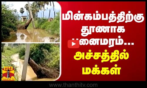 தென்காசி மாவட்டம் சங்கரன்கோவில் அருகே கோட்டைமலைக்கு செல்லும் வழியில், மின்கம்பம் ஒன்று பல மாதங்களாக சாய்ந்த நிலையில் உள்ளது. ஆனால் மின்கம்பத்தை சரிசெய்யாமல், முறிந்த பழைய பனை மரத்தை தூணாக நிறுத்தி வைத்துள்ளனர். இந்நிலையில் அசம்பாவிதம் நிகழ்வதற்கு முன்பாக, மின்வாரிய அதிகாரிகள் மின்கம்பத்தை சரிசெய்ய வேண்டும் என அப்பகுதி மக்கள் கோரிக்கை விடுத்துள்ளனர்.