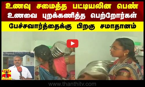 உணவு சமைத்த பட்டியலின பெண்..உணவை புறக்கணித்த பெற்றோர்கள்..பேச்சவார்த்தைக்கு பிறகு சமாதானம்