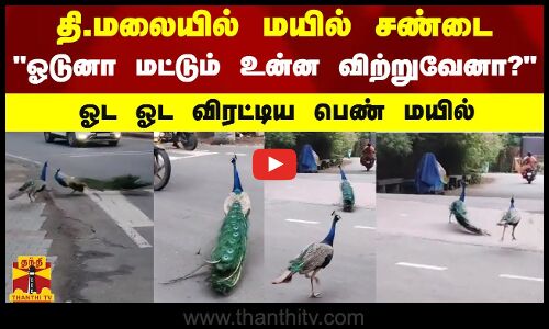 திருவண்ணாமலையில் மயில் சண்டை - "ஓடுனா மட்டும் உன்ன விற்றுவேனா?" - ஓட ஓட விரட்டிய பெண் மயில்